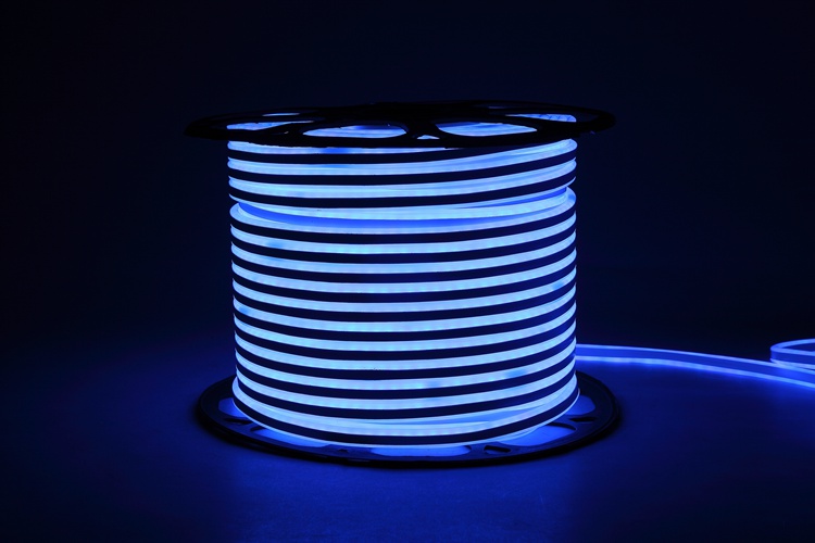 As luzes de tira de neão azul usam uma concha de PVC de alta transmitância, com chips LED flexíveis SMD como fonte de luz central e uma placa de circuito PCB de alta condutividade térmica de 10 mm de largura dentro. Cada rolo é enviado por 100 metros. É um produto flexível de tira de luz LED com excelente desempenho de luz.